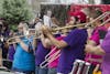 A trombonist plays alongside members of the Pride of Indy on Friday, April 13, at the Waldron Hill Buskirk Park. The ensemble is Indiana's only LGBT instrumental ensemble.