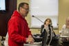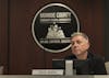 Kelly Smith, president of the Monroe County Board of School Trustees, listens to comments Tuesday night. Smith conducted the meeting and handed out awards to recipients.