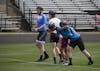 Seniors Kevin Drake and Chatham Anderson race alongside sophomore Will Hobart during Sunday’s Team Pursuit at Bill Armstrong Stadium. Over 30 teams competed throughout the day.