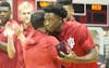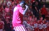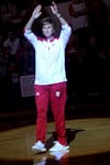 OG Anunoby dances his way onto the court after being announced. Anunoby received his BIG 10 Championship ring during Hoosier Hysteria Saturday evening.