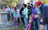 Children gather outside of the Student Building Saturday morning to watch a demonstration of an errupting volcano. This was one of many events put on during Science Fest.