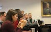 Law students listen to Jennifer Westerhaus Adams speak about her background in law. This event took place in the Mauer School of Law on Monday afternoon.