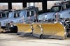 A line of snow plows rests inside a shelter Monday afternoon at Bloomington City Utilities Department