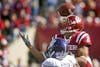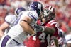 Senior quarterback Ben Chappell stiff-arms Northwestern's Nate Williams during IU's 20-17 loss to the Wildcats on Saturday at Memorial Stadium.