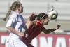 Ohio State defender Liz Sullivan heads the ball away from IU's Carly Samp during the Hoosiers' 1-0 win against the Buckeyes on Sunday at Bill Armstrong Stadium.