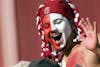 Guest professor and musician Todd Rundgren directs the Marching Hundred during the second half of IU's 20-17 loss to Northwestern on Saturday at Memorial Stadium.