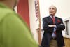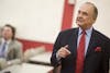 Legendary broadcaster and IU alumnus Dick Enberg speaks to a class of Health Physical Education and Recreation students at the Football Auditorium on Thursday at Memorial Stadium. Enberg, best known for his work covering football, baseball and tennis, wrote "COACH," a play about former Marquette basketball coach Al McGuire, which will be performed this weekend at the Ruth N. Halls Theater.