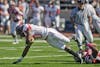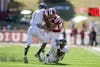 Senior running back Trea Burgess is tackled by Arkansas State linebacker Javon McKinnon during Saturday's 36-34 win against the Red Wolves on Saturday at Memorial Stadium.