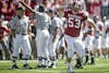 Junior linebacker Jeff Thomas reacts as referees signal a recovered fumble for IU during the Hoosiers' 36-34 win against Arkansas State on Saturday at Memorial Stadium.