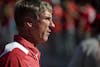 IU coach Bill Lynch leaves the field after the Hoosiers' 38-10 loss to Ohio State on Saturday in Columbus, Ohio.