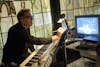 Terry LaBolt, musical director of IU's Musical Theater program, works backstage before rehearsal for RENT on Thursday at the Ruth N. Halls Theatre.