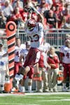 Freshman wide receiver Kofi Hughes makes a catch over the middle during IU's 38-10 loss to Ohio State on Saturday in Columbus, Ohio.