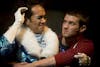 Director George Pinney speaks with junior Cosmo Clemens, playing Angel, before a dress rehearsal of RENT on Monday at the Ruth N. Halls Theatre.
