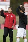 IU coach Todd Yeagley gives his team instructions during IU's 1-1 draw against Wisconsin Sunday at Bill Armstrong Stadium.
