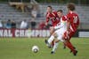 Senior midfielder Andy Adlard takes a corner kick during IU's 1-1 draw against Wisconsin Sunday at Bill Armstrong Stadium.