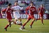 Junior forward Will Bruin dribbles towards goal during IU's 1-1 draw against Wisconsin Sunday at Bill Armstrong Stadium.