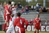 Wisconsin's Luke Goodnetter heads the ball away from junior midfielder Chris Estridge during IU's 1-1 draw against the Badgers Sunday at Bill Armstrong Stadium.