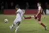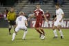Junior forward Will Bruin attempts a pass during IU's 1-0 win against Evansville Wednesday at Bill Armstrong Stadium.