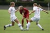 Wisconsin's Taryn Francel and Erin Jacobsen block freshman midfielder Lisa Nouanesengsy's pass during IU's 1-0 overtime loss to the Badgers on Sunday at Bill Armstrong Stadium.
