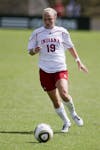 Junior midfielder Kirsta Kellin controls the ball during IU's 3-1 loss to Nebraska on Saturday at Bill Armstrong Stadium.