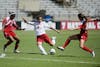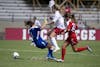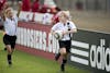 Sophomore forward Orianica Velasquez is dispossessed during during IU's 3-1 loss to Nebraska on Saturday at Bill Armstrong Stadium.