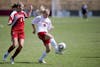 Senior forward Leigh Ann Cummings is fouled during IU's 3-1 loss to Nebraska on Saturday at Bill Armstrong Stadium.