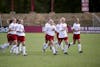 The Hoosiers run off the field after the National Anthem before their 3-1 loss to Nebraska on Saturday at Bill Armstrong Stadium.