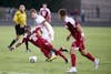 Freshman midfielder Becca Zambon dribbles downfield during IU's 3-1 loss to Nebraska on Saturday at Bill Armstrong Stadium.