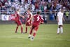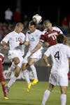 Sophomore midfielder Joe Tolen attempts a volley during IU's 2-1 loss to California Friday at Bill Armstrong Stadium.