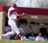 IU third baseman Micah Johnson hits a leadoff double during the Hoosiers' 7-3 win over Taylor University Saturday at Sembower Field.