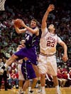 Freshman guard Jordan Hulls drives the lane during IU's 88-80 win against Northwestern March 6 at Assembly Hall. Hulls finished the game with 24 points from eight 3-pointers.