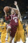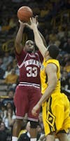 Senior guard Devan Dumes takes a shot during IU's 73-57 loss to Iowa Feb. 28 at Carver Hawkeye Arena in Iowa City.