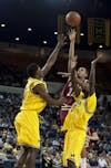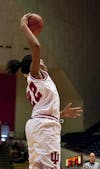 IU's Jori Davis shoots over Minnesota's Jackie Voigt during the Hoosiers' 59-50 loss to the Golden Gophers Sunday at Assembly Hall.