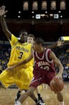 Sophomore guard Verdell Jones drives the lane during IU's 69-45 loss to Michigan Jan. 14 at the Crisler Arena in Ann Arbor, Mich.