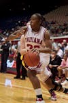 Junior guard Jori Davis drives the lane during IU's 59-50 loss to Minnesota Sunday at Assembly Hall.