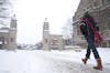 A student makes her way down a snow-covered path between the Old Crescent and the Sample gates Monday. Bloomington was hit with several inches of snow, with flurries continuing through Monday evening.