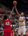 Junior forward Hope Elam shoots over Ohio State's Jantel Lavender during IU's 67-62 win over the No. 4 Buckeyes Jan. 31 at Assembly Hall.