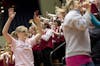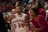 Junior forward Hope Elam celebrates with a fan after IU's 67-62 win over No. 4 Ohio State Jan. 31 at Assembly Hall.