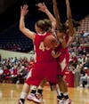 Sophomore forward Danilsa Andujar is defended by Ohio State's Andrea Walker during IU's 67-62 win over the No. 4 Buckeyes Jan. 31 at Assembly Hall.