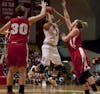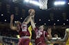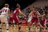 Wisconsin's Lin Zastrow wins the tipoff during IU's 55-47 loss to the Badgers Jan. 28 at Assembly Hall.