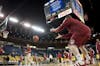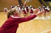 Freshman forward Aulani Sinclair participates in pregame rituals with teammates before IU's 55-47 loss to Wisconsin Jan. 28 at Assembly Hall.