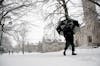 A pedestrian makes his way through snow near the Old Crescent Thursday. The Midwest was blanketed with snow days before students, staff and faculty were due to resume classes.