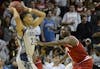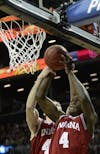 Junior guard Victor Oladipo and sophomore forward Cody Zeller jump to rebound a ball during the Hoosiers' 82-72 victory against Georgetown on Tuesday at the Progressive Legends Classic at Barclays Center.