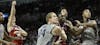 Junior guard Victor Oldaipo and senior forward Christian Watford watch a shot made by senior forward Cody Zeller along with Georgetown players during the Hoosiers' 82-72 victory against Georgetown Tuesday at the Progressive Legends Classic at Barclays Center.