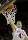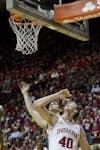 Junior forward Will Sheehey reaches up to shoot a basket during the Hoosiers' 87-61 victory against North Dakota State on Monday at Assembly Hall.