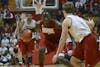 During the dunk contest Victor Oladipo succesfully dunks the ball over a group of people during Hoosier Hysteria.