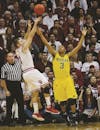 Junior guard Jordan Hulls shoots the ball as Michigan guard Trey Burke attempts to block him during the Hoosiers' 73-71 victory against Michigan on Thursday at Assembly Hall.