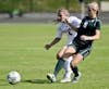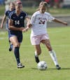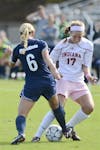 Sophomore midfielder Becca Zambon attempts to gain possession of the ball during the Hoosiers' 3-0 loss to Penn Sunday at the Bill Armstrong Stadium.