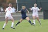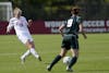 Sophomore midfielder Lisa Nouanesengsy moves down field during the Hoosiers' 0-1 loss to the Michigan Wolverines on Sunday at Jerry Yeagley Field.