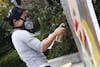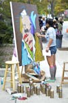 Senior Karey Bussinger plays with Jackson, her Jack Russell Terrier, on Sunday at the Monroe County Humane Association Run for the Animals fundraiser in Dunn Meadow. This was the fifteenth year that the event was held.